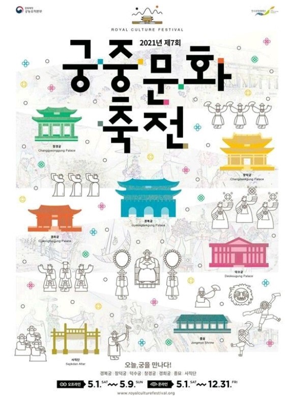 [국방신문=주복식문화전문기자] 2021년 제7회 궁중문화축전이 “오늘, 궁을 만나다” 주제로 4월 30일 오후 7시 30분 경복궁 수정전에서 개막식을 시작으로 5월 9일까지 5대궁(경복궁·창덕궁·덕수궁·창경궁·경희궁)과 종묘, 사직단에서 9일간 펼쳐진다.
