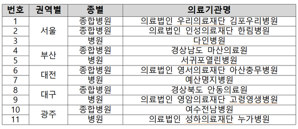 이에 따라 권역별로 11개의 우수 의료기관을 최종 선정하였으며, 인증 유효기간은 2년으로 오늘 2023년까지이다.