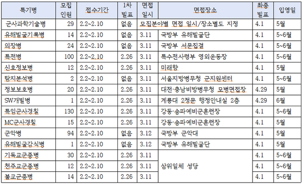 병무청은 아울러 올해 전문특기병(어학병 포함) 연간 모집일정 중 2월 모집일정을 공개했다.