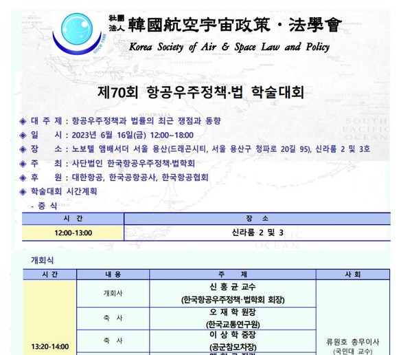 이날 제70회 학술대회는 사단법인 한국항공우주정책·법학회가 주최하고 대한항공, 한국공항공사, 한국항공협회가 후원했다.